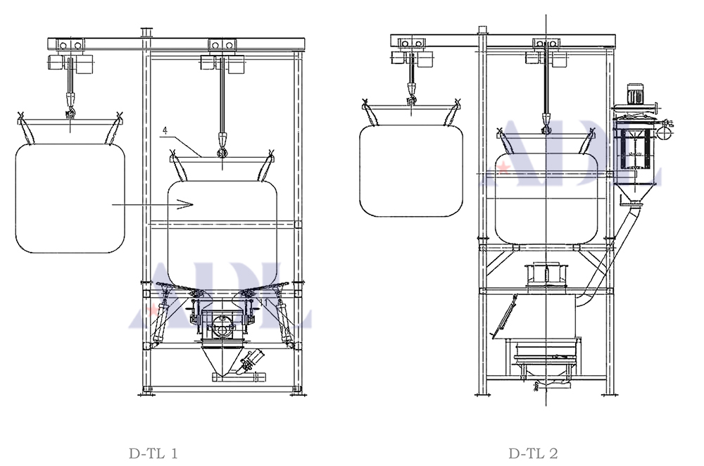 D-TL-2 投料站是基于 D-TL-1 的吨包投料站基础上增加小袋包装物料的投料功能。适用于制药、化工、
