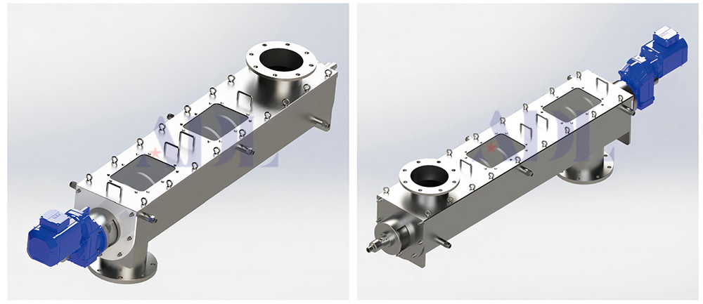水冷内螺旋输送机包括进料单元、出料单元、筒体、冷却单元、驱动单元和支撑单元,进料单元和出料单元分